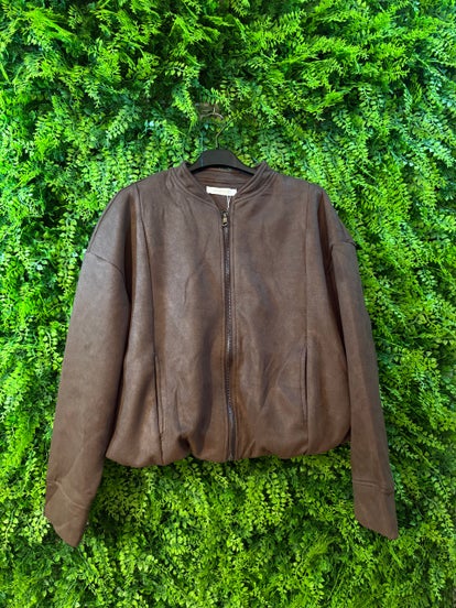 Giacca comoda e elegante marrone, scamosciata e adatta per l'autunno.