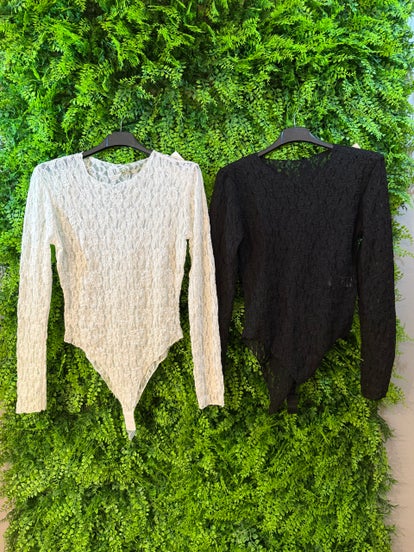 Body elegante ricamato disponibile in nero e bianco.