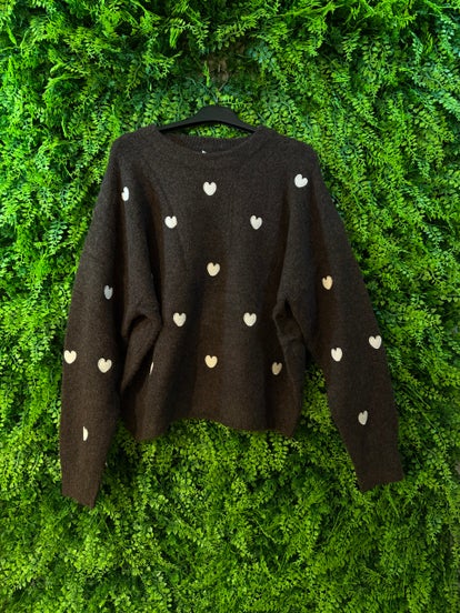 Maglione marrone con cuori