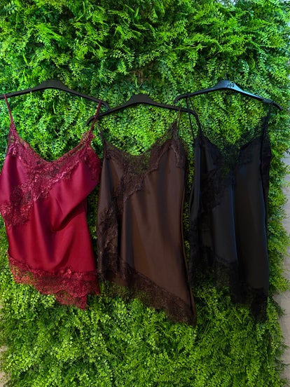 Top elegante in pizzo, tessuto simil seta, disponibile in più colori.