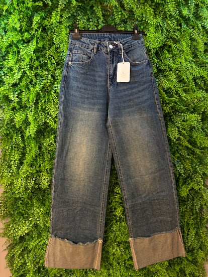Jeans brillantinato con risvolto