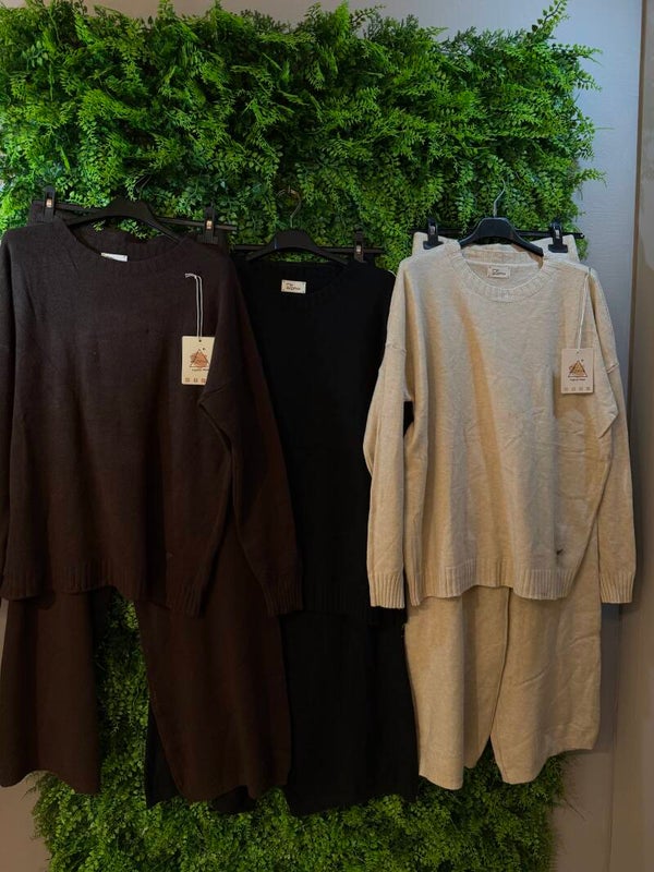 Completo in maglina con maglione e pantalone.