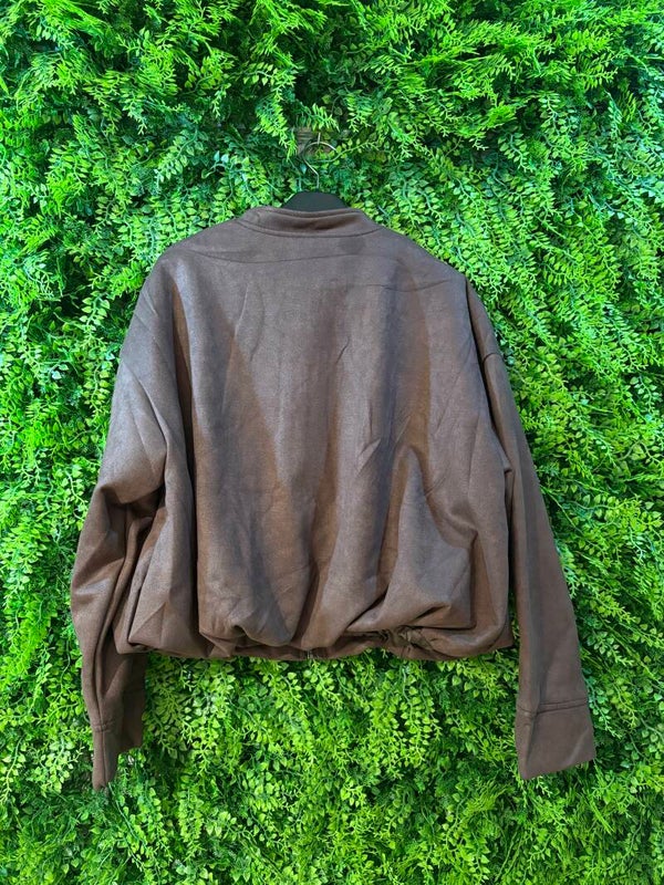 Giacca comoda e elegante marrone, scamosciata e adatta per l'autunno.